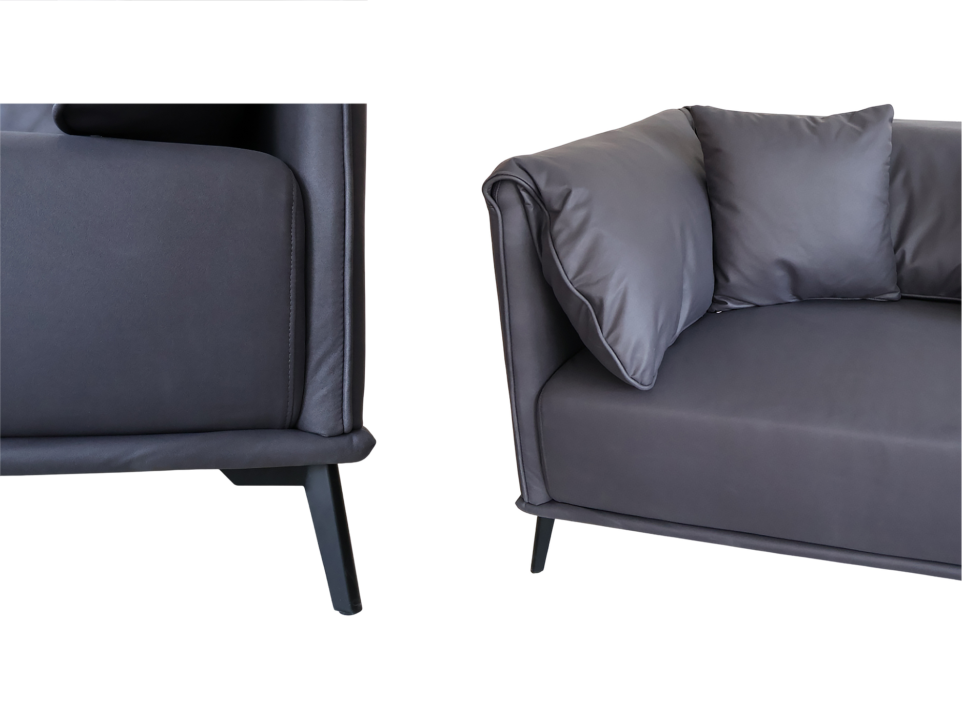Sleek, stylish, and built for comfort, the ALFERO sofa set is the perfect blend of modern design and luxury. Featuring high-density cushions for all-day relaxation and easy-to-clean, stain-resistant Polyurethane fabric. Its sleek metal legs and sophisticated charcoal color make it a striking centerpiece in any room.