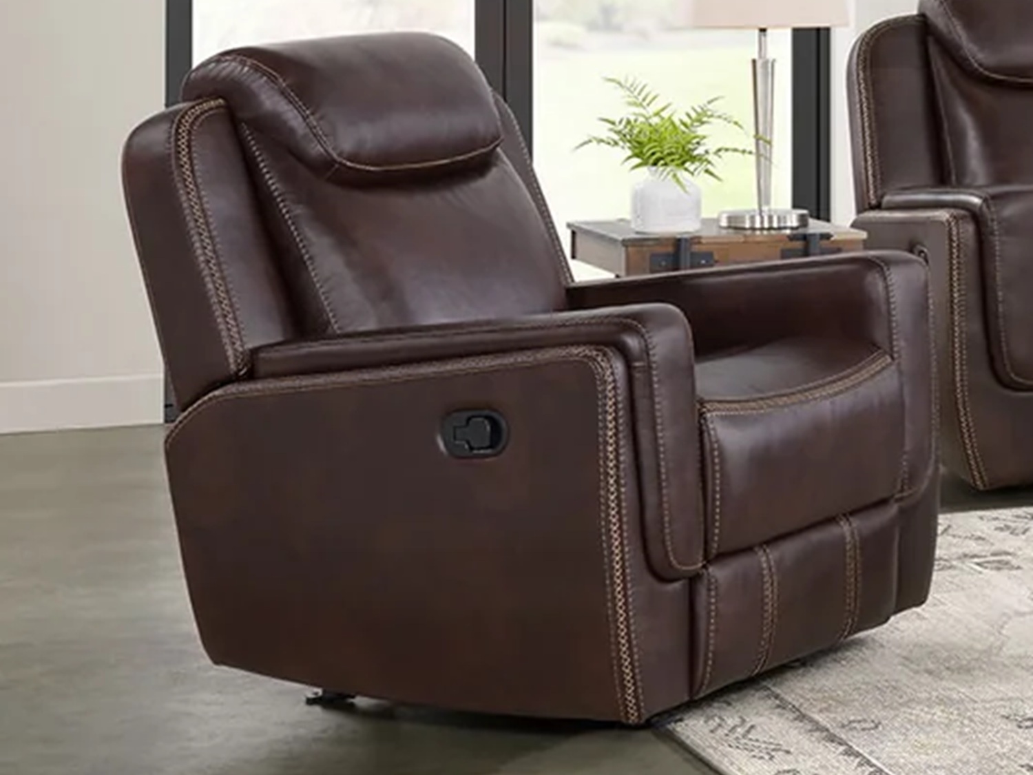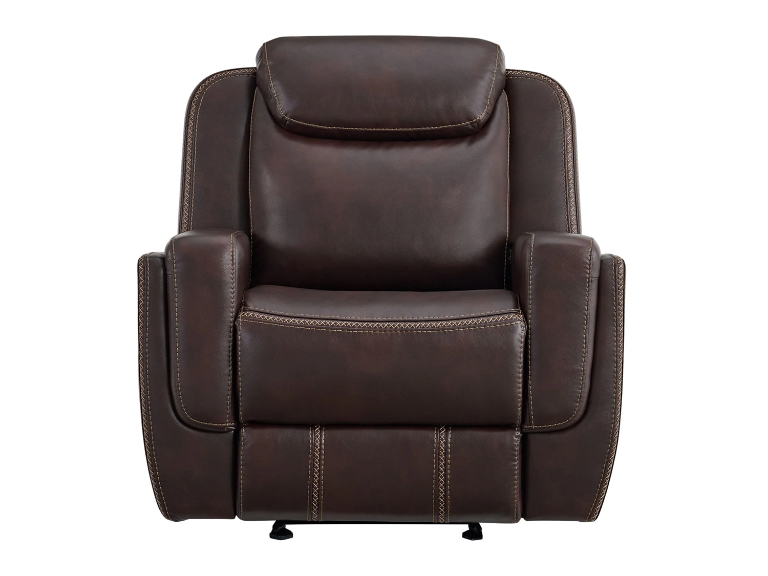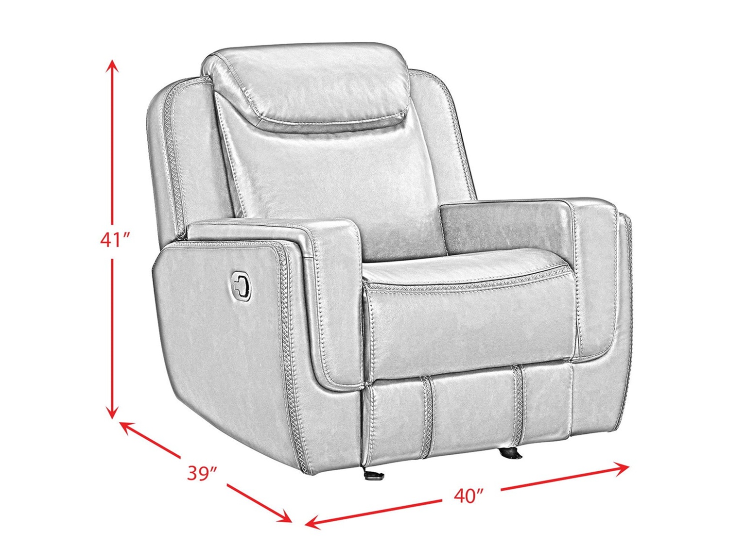 Sink into the luxurious comfort of the BISTRA Glider Recliner Chair. Wrapped in faux leather upholstery that is decorated with contrast stitching, this recliner chair adds a touch of sophistication to your space. Its smooth gliding motion and user friendly recline mechanism offer a haven of tranquility at the pull of a lever. Plush foam cushioning, spacious seating, and padded armrests create comforting bliss, perfect for extended periods of repose. Built with a sturdy frame and durable upholstery, the BISTRA Glider Recliner Chair blends timeless design with lasting quality, creating the ultimate retreat in your space.