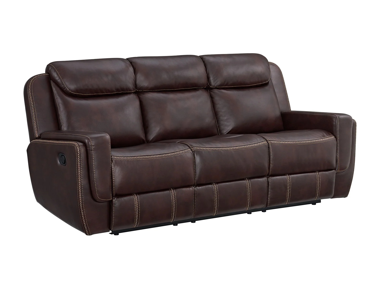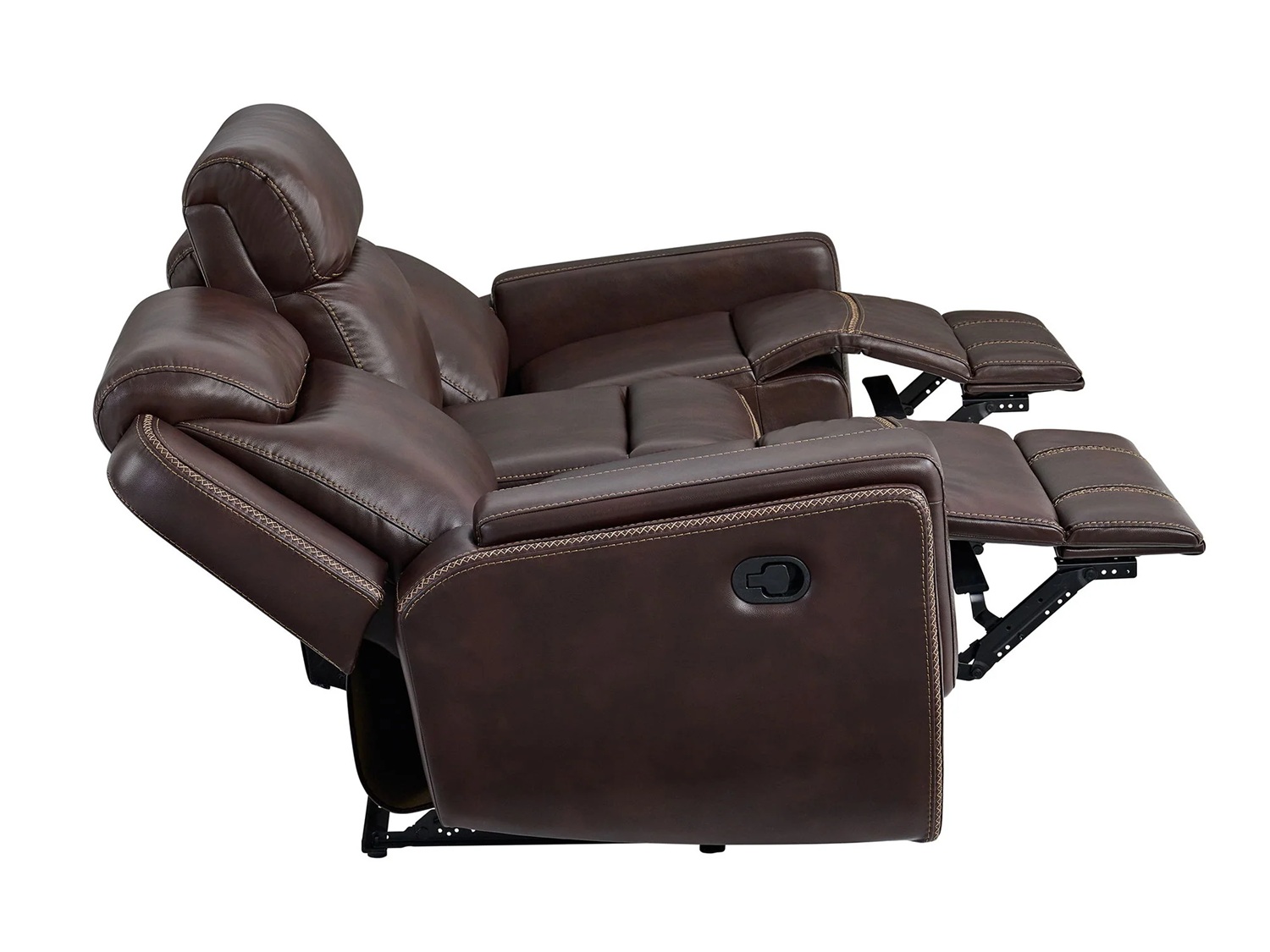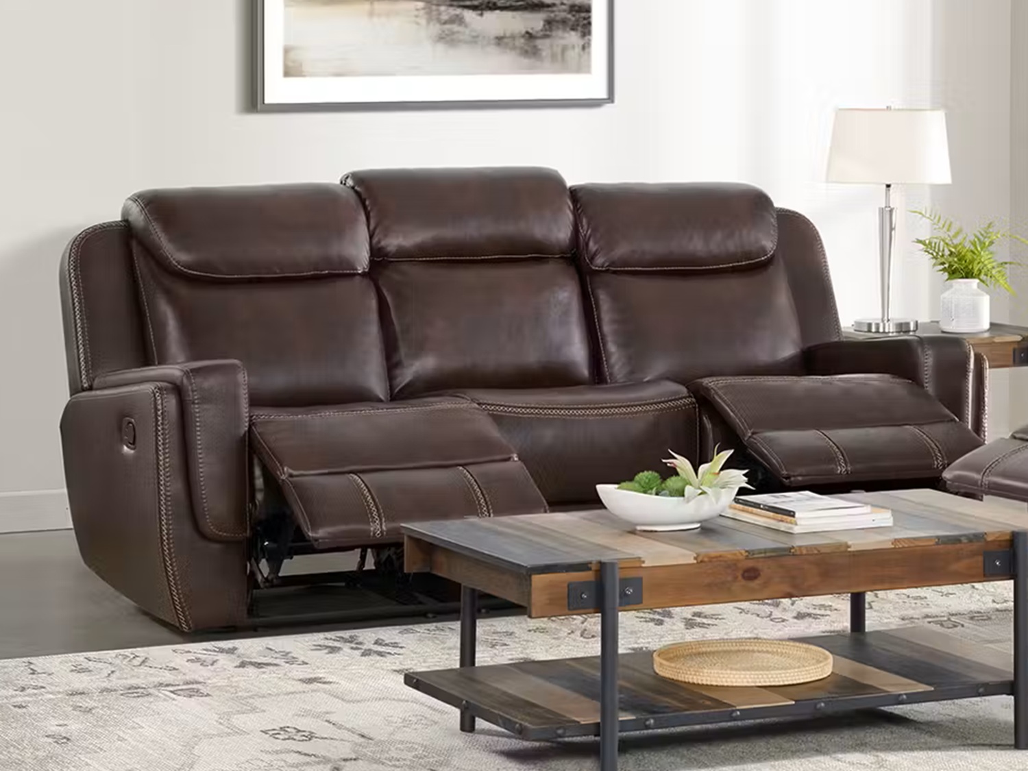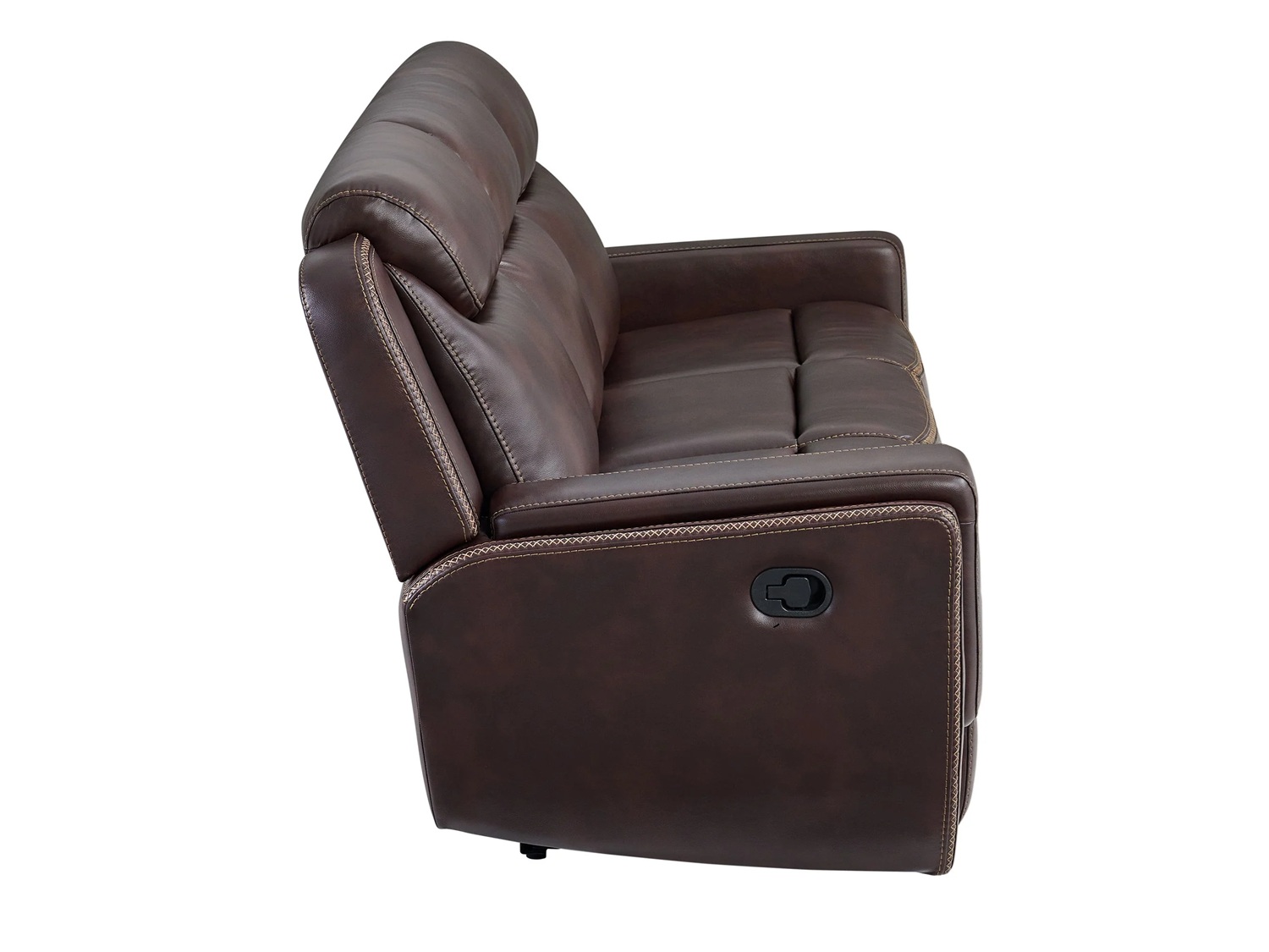Sink into the luxurious comfort of the BISTRA Reclining Sofa. Wrapped in faux leather upholstery that is decorated with contrast stitching, this sofa adds a touch of sophistication to your space. Its smooth gliding motion and user friendly recline mechanism offer a haven of tranquility at the pull of a lever. Plush foam cushioning, spacious seating, and padded armrests create comforting bliss, perfect for extended periods of repose. Built with a sturdy frame and durable upholstery, the BISTRA Reclining Sofa blends timeless design with lasting quality, creating the ultimate retreat in your space.
