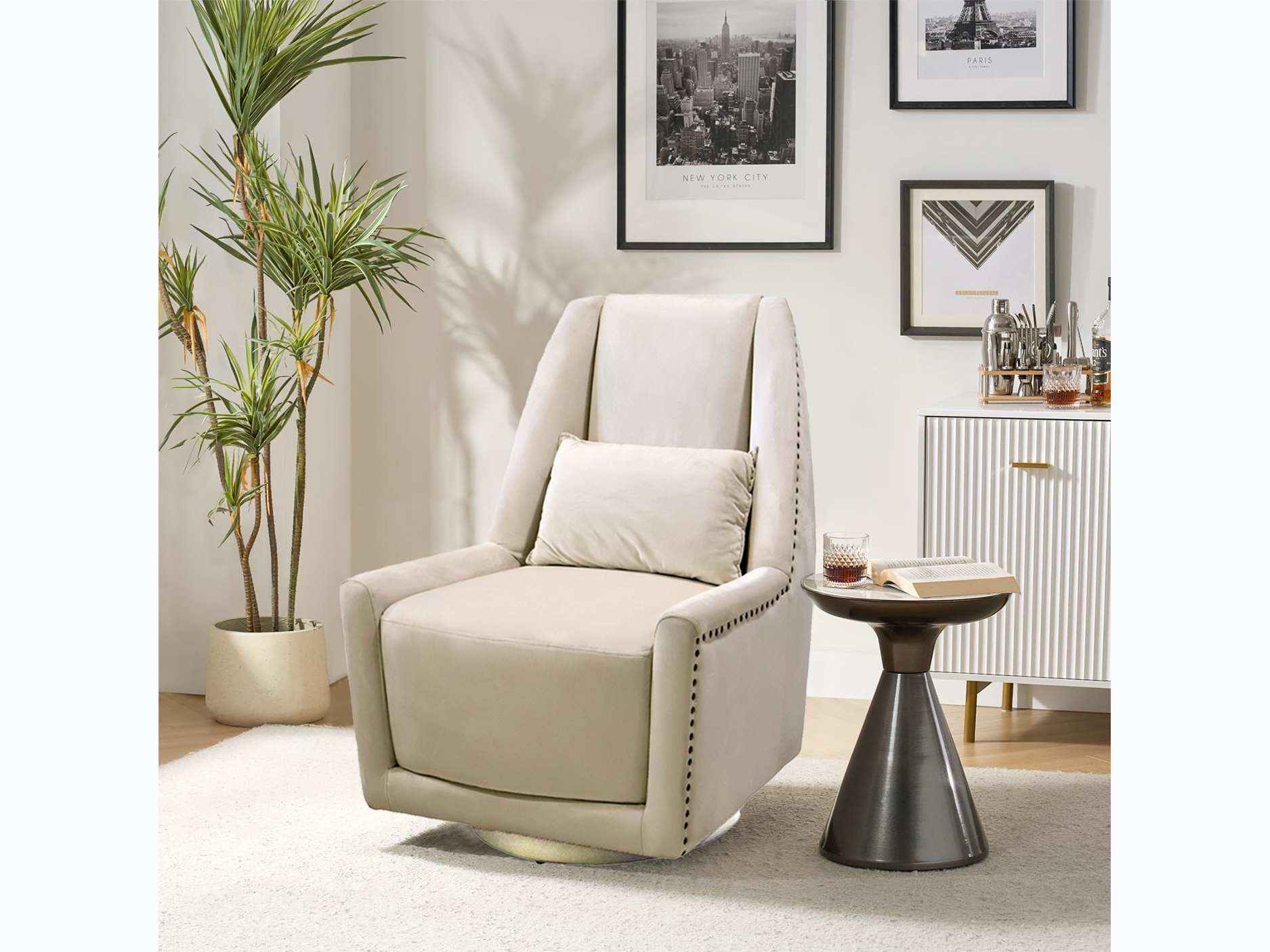 Settle into the smooth comfort of the BUELERO Accent Chair. Wrapped in beige velvet and designed with a sleek armless Style, it brings modern charm to any space. An accent pillow adds a touch of coziness, while its easy-clean surface keeps it looking effortlessly fresh.