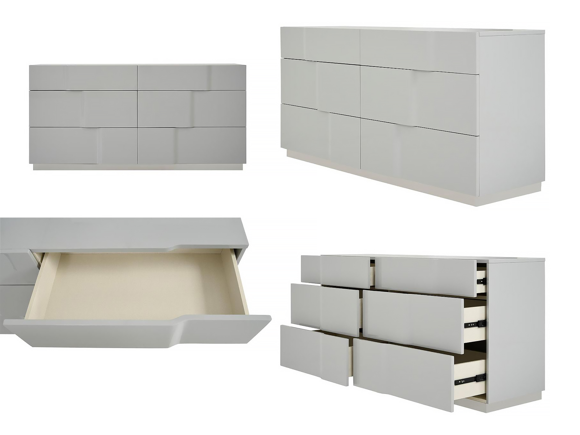 Elevate your bedroom with the Modern LED CAPITONE King Bed Set, a perfect fusion of style, functionality, and innovation. This set features a California King-sized bed with built-in LED lighting, offering a sleek, ambient glow that adds a contemporary touch to any space. Designed with practicality in mind, the storage bed offers hidden compartments, helping you maximize your room’s storage potential while keeping everything neat and accessible. The set also includes two matching nightstands with convenient USB connections, so you can easily charge your devices right by your bedside. The dresser comes with six spacious storage drawers, each with a fully finished interior, providing ample space for clothing and accessories. The mirror is a versatile, elegant piece that can be displayed vertically or horizontally, adapting to your room’s layout. Finished in a sophisticated Glossy Gray, this modern set is crafted from high-quality engineered wood, ensuring durability and a refined, contemporary look. Whether you’re seeking a chic design upgrade or an all-in-one storage solution, this set is the perfect choice for creating a polished, clutter-free bedroom.