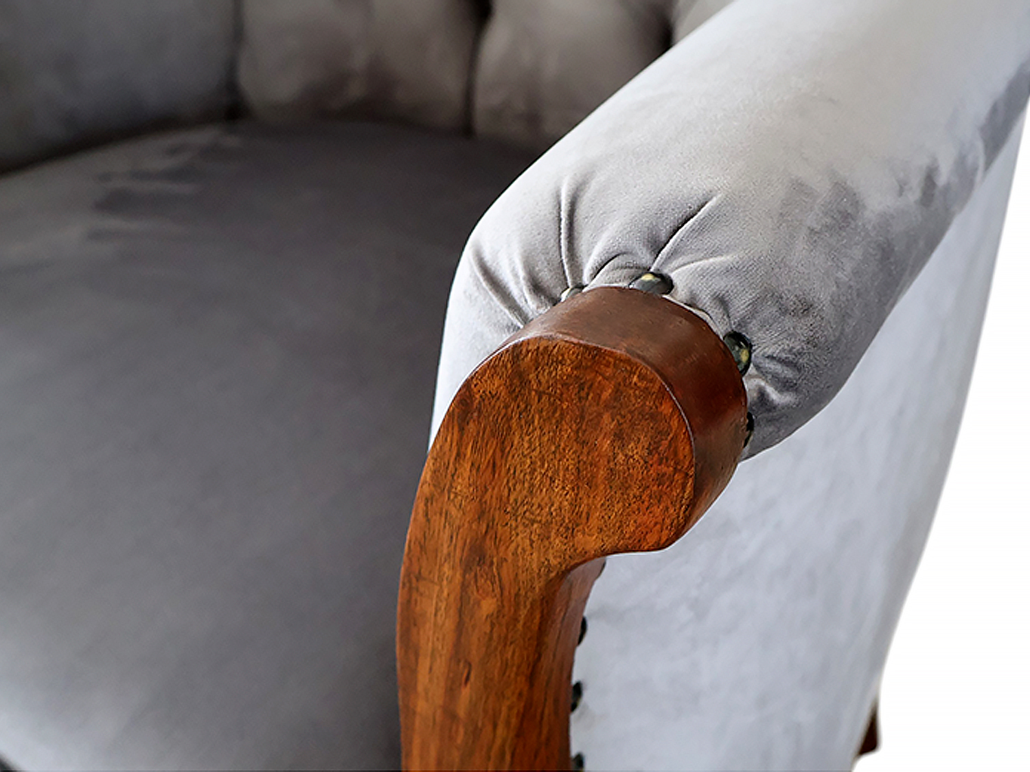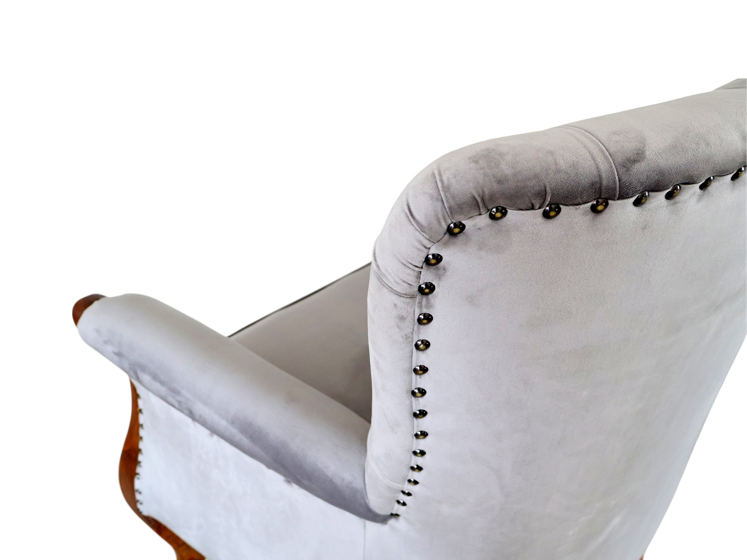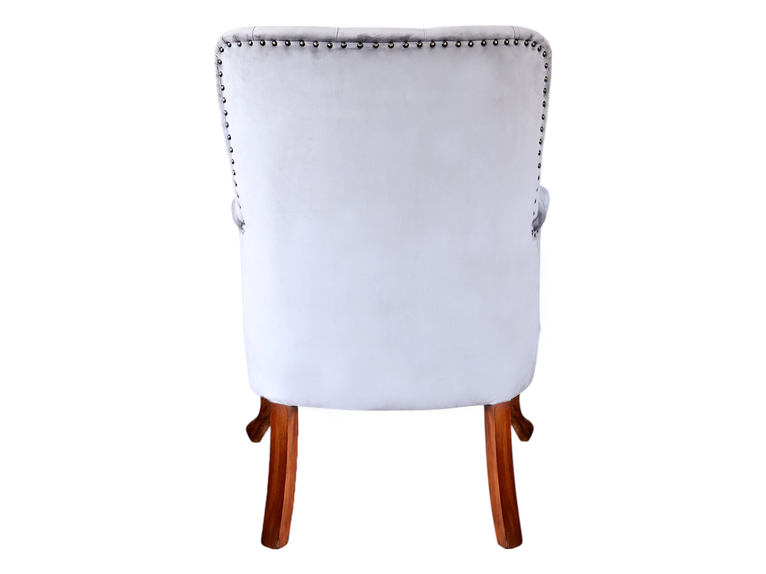 Looking for an stunning Accent chair that is characterized by excellent design and durability, it would be a good decision if you choose this product. The ERITHON Accent Chair opulent Grey velvet fabric not only brings a sophisticated touch but also offers a soft, welcoming texture that enhances the overall aesthetic of any space, while the densely filled seat aims to offer you optimal comfort when sitting. A tufted back, nail head trim and wooden feet finish off this timeless look.