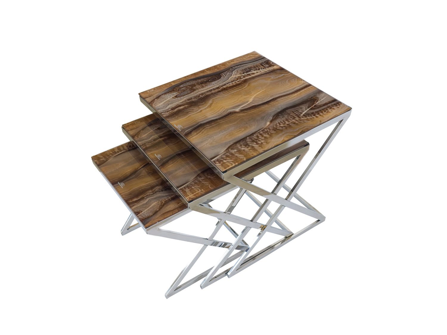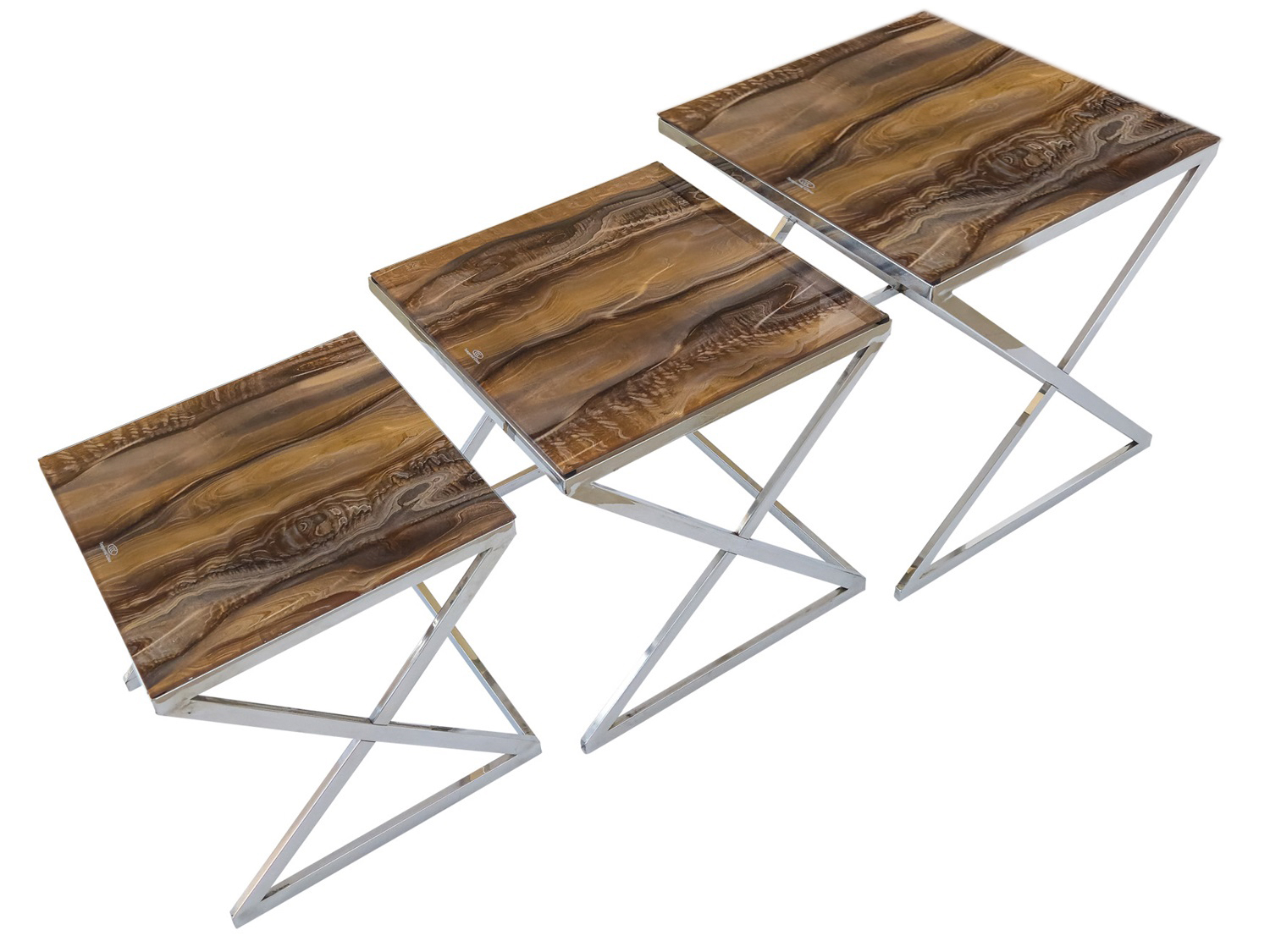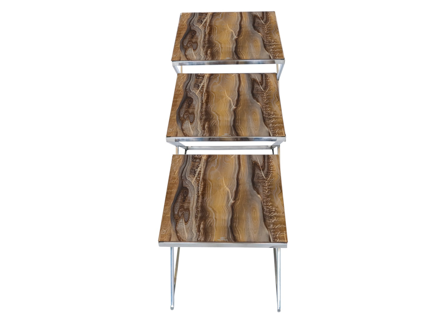 Add an elegant look to your living room with the FLOYD 3 Pc Nesting Table Set. It’s made from metal and features a tempered glass top with an abstract pattern. Its design is ideal for both traditional and modern settings, so it’s super versatile.