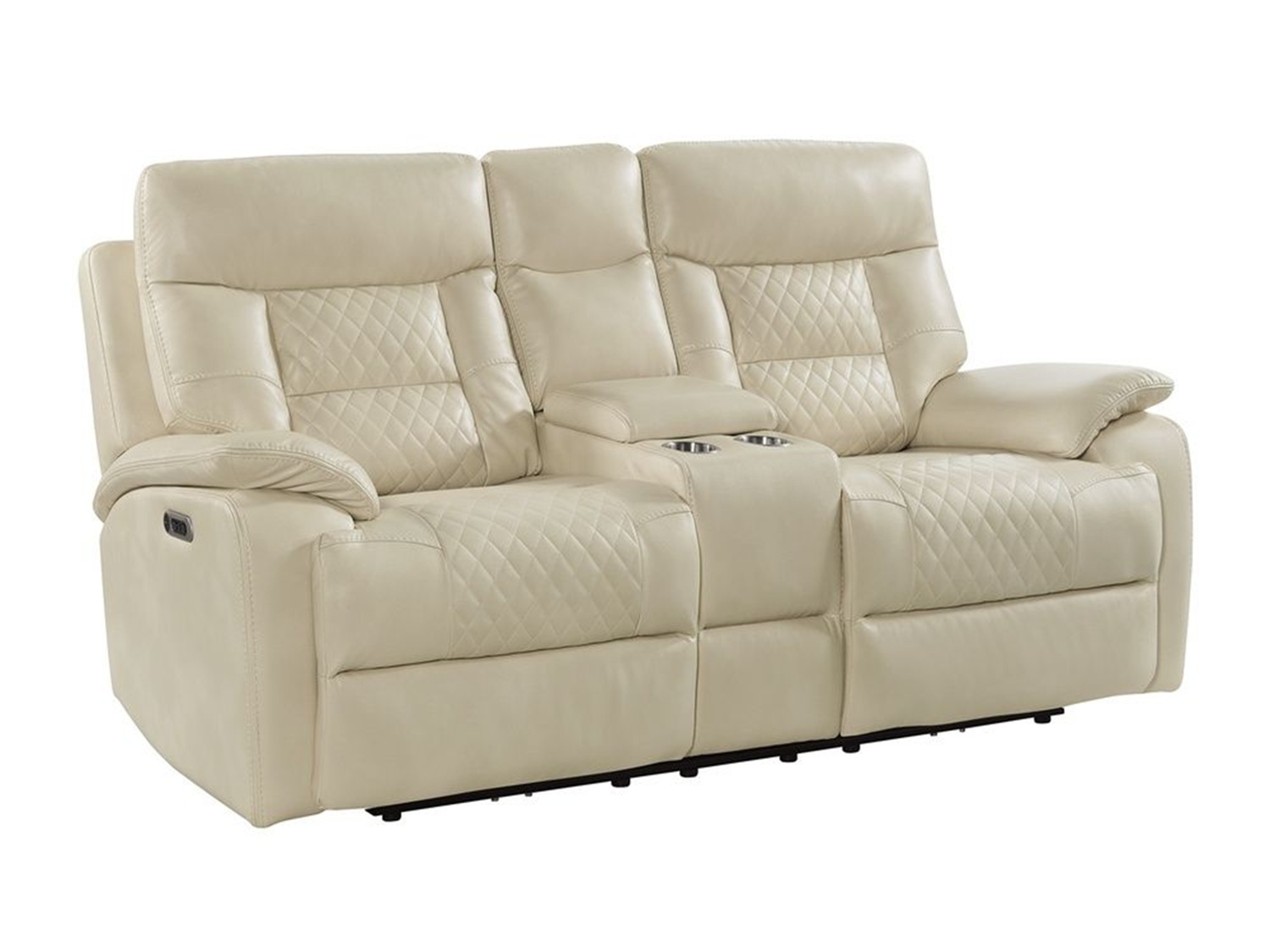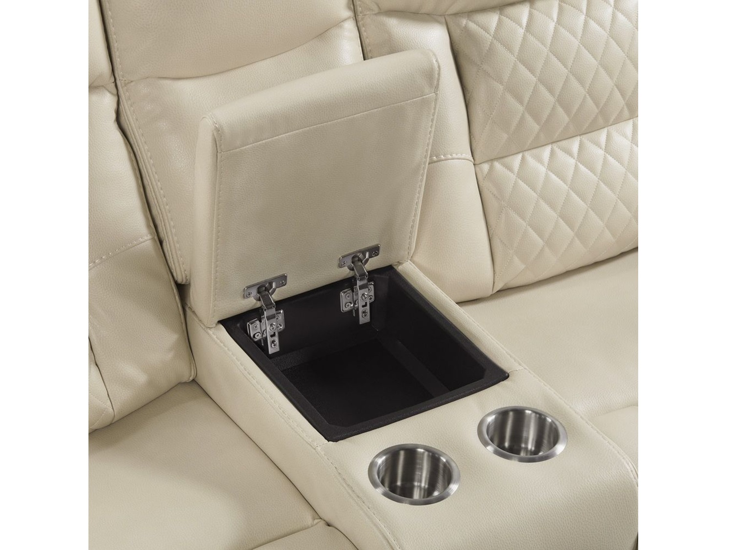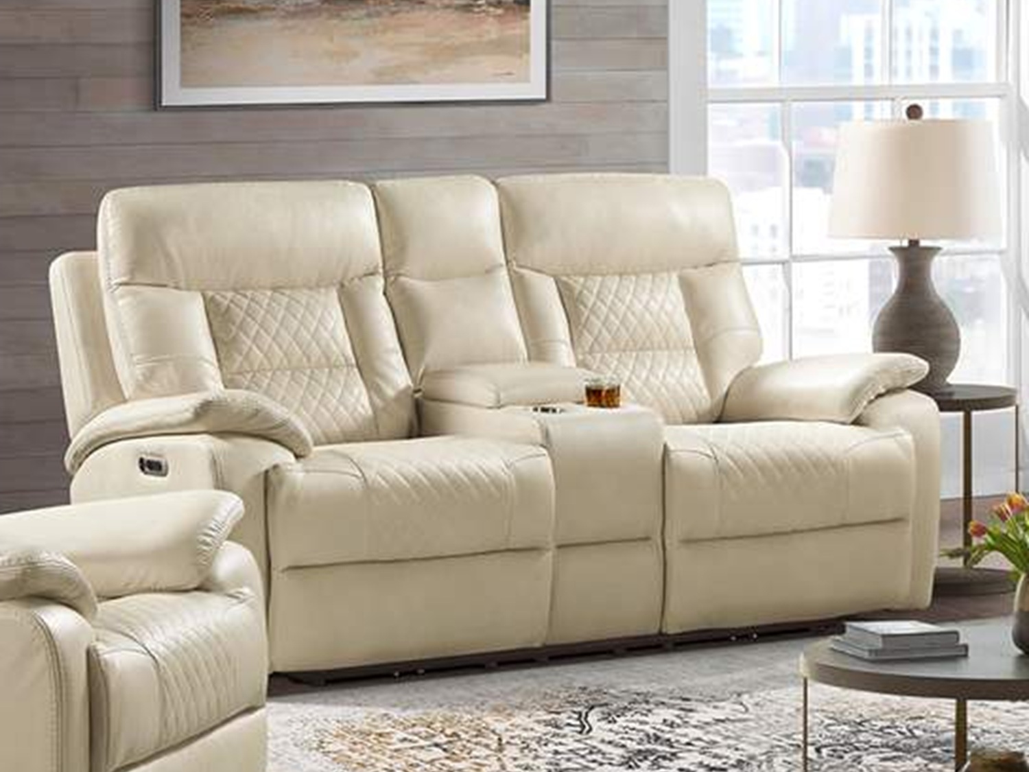 The FRATA Power Reclining Loveseat with Power Motion Head Recliner & Console features motion upholstery with a luxurious quilted pattern tufting design. Pillow top arms and headrest provide maximum comfort for you to feel at ease every time you take a seat. Also experience ultimate relaxation with the reclining and power headrests that bring each of these elegant seats to the next level. Bring style and functionality to your living space with the FRATA Power Reclining Loveseat with Power Motion Head Recliner & Console.