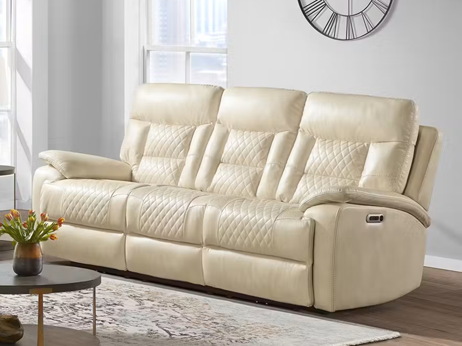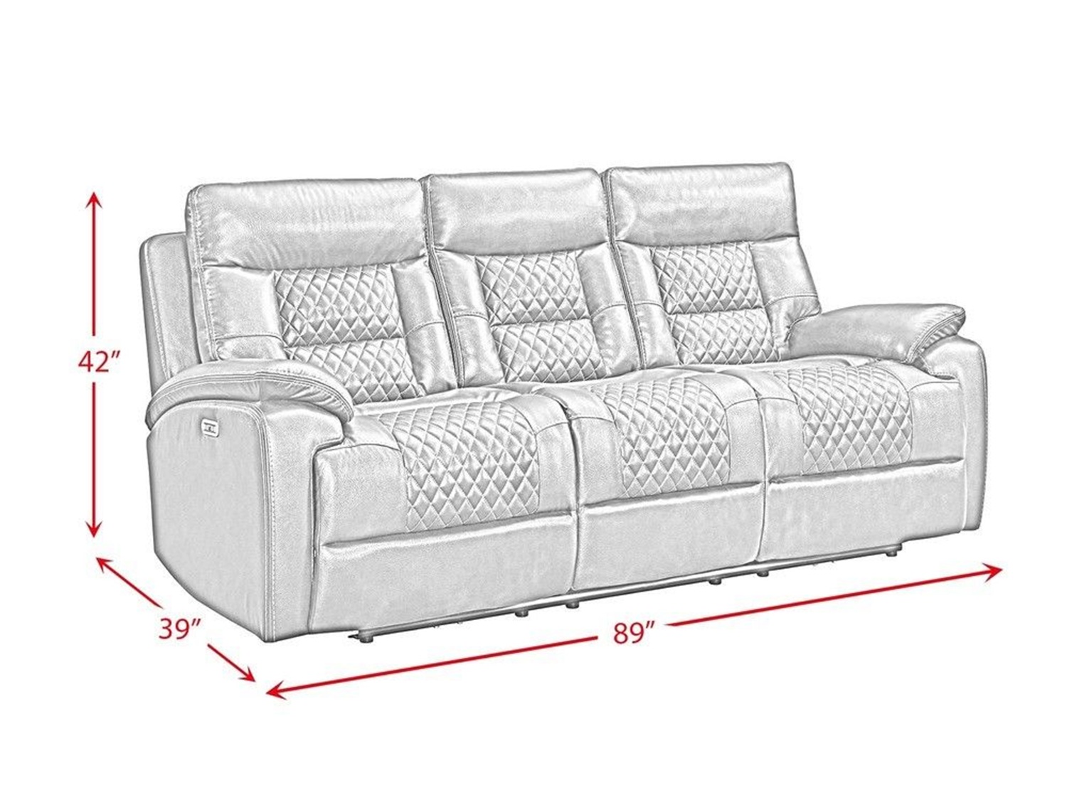 The FRATA Power Reclining Sofa with Power Motion Head Recline features motion upholstery with a luxurious quilted pattern tufting design. Pillow top arms and headrest provide maximum comfort for you to feel at ease every time you take a seat. Also experience ultimate relaxation with the reclining and power headrests that bring each of these elegant seats to the next level. Bring style and functionality to your living space with the FRATA Power Reclining Sofa with Power Motion Head Recline.