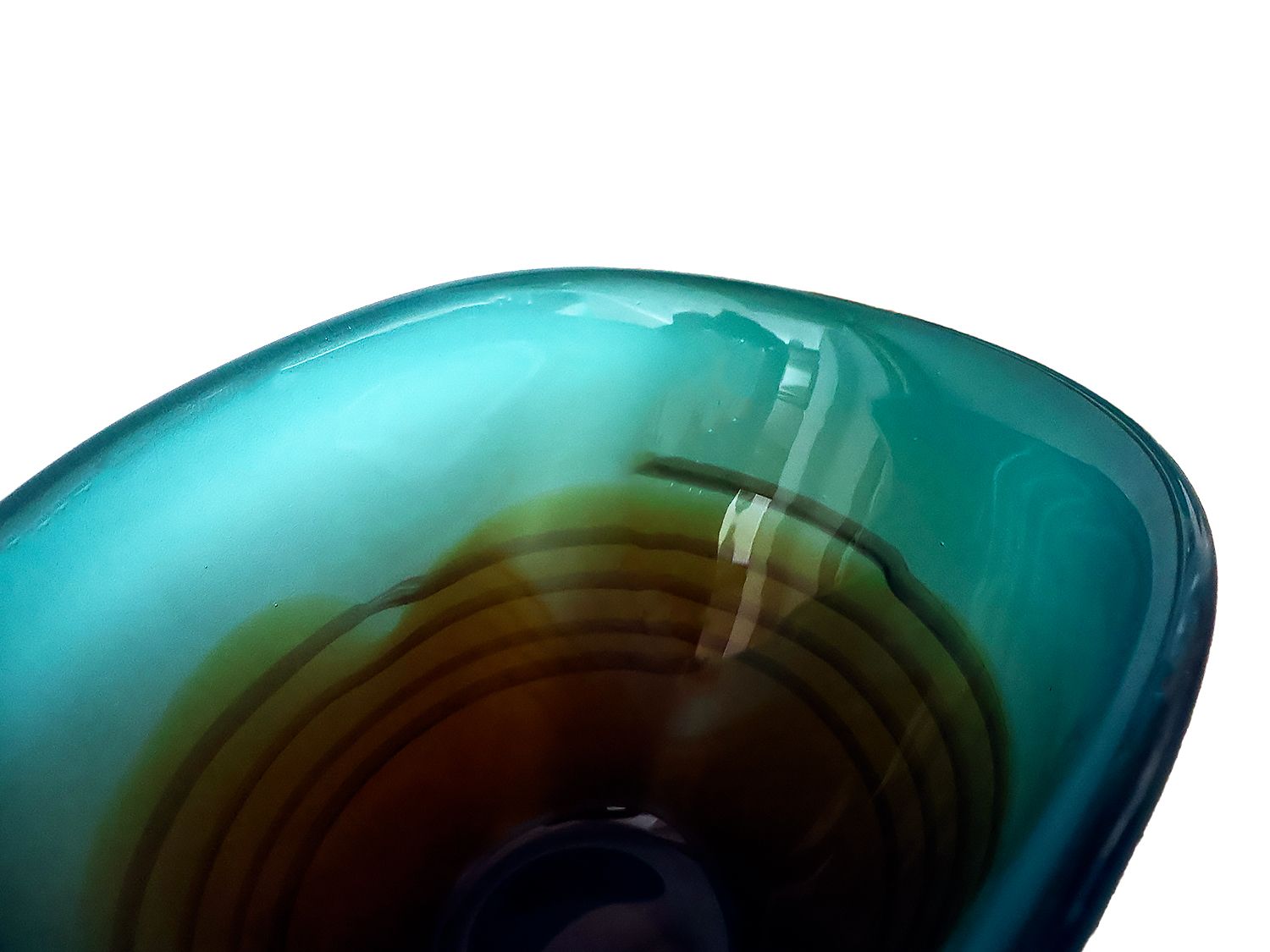 INDIO vase is a beautiful, handcrafted piece of glass art. Its Ombre-effect coloration creates a sense of depth and visual interest, making it a stunning addition to any room. The wide, flared shape of the vase allows it to hold a generous amount of flowers or branches,