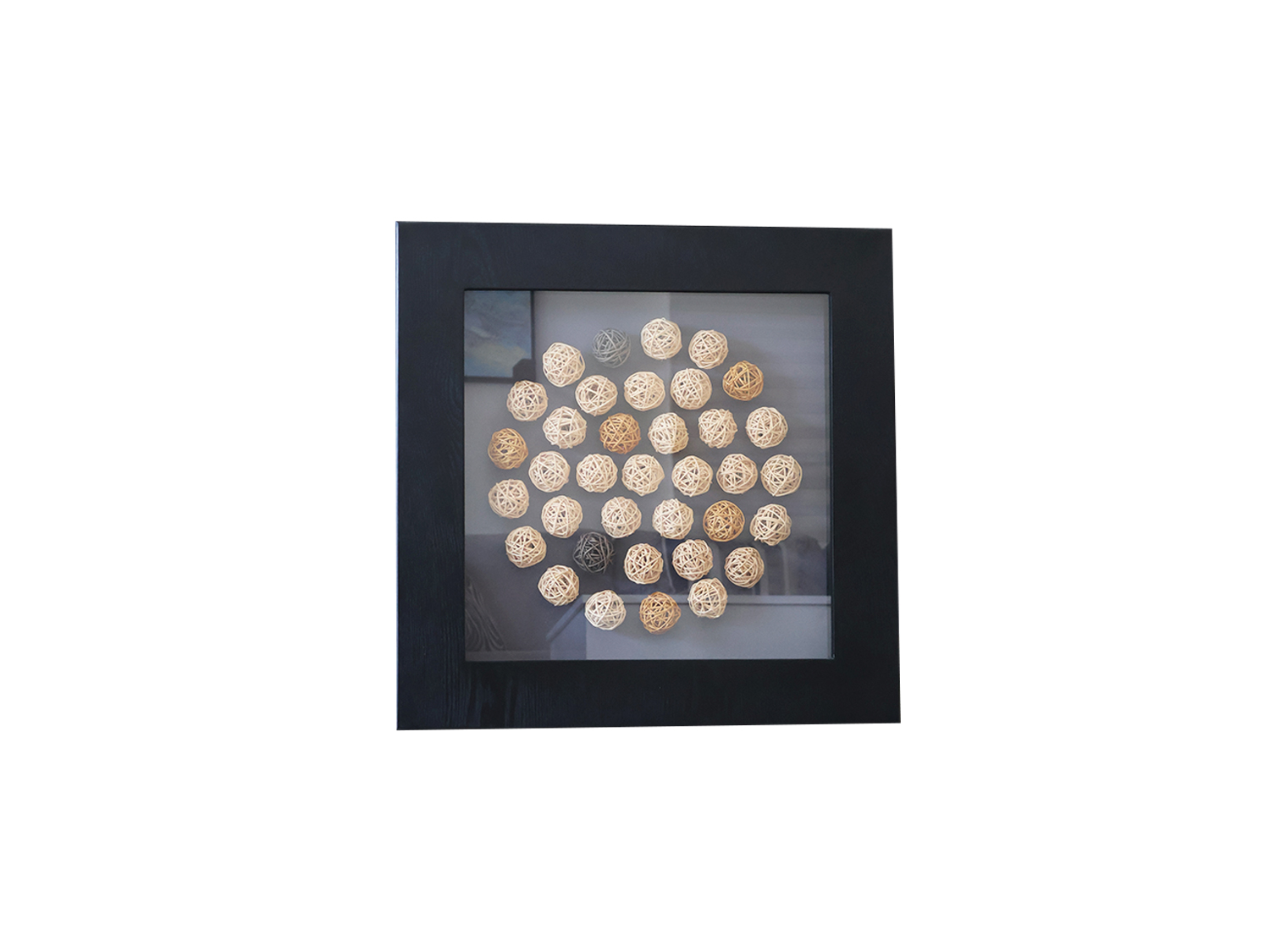 Our MLLON WALL DCOR can turn any room in your home/office into a contemporary, upscale space. The center piece of the art piece is made of decorative rattan balls.It comes with a sturdy, black-finished solid wood shadow box frame; a high-quality clear glass panel and velvet felt on the entire back side for wall protection.