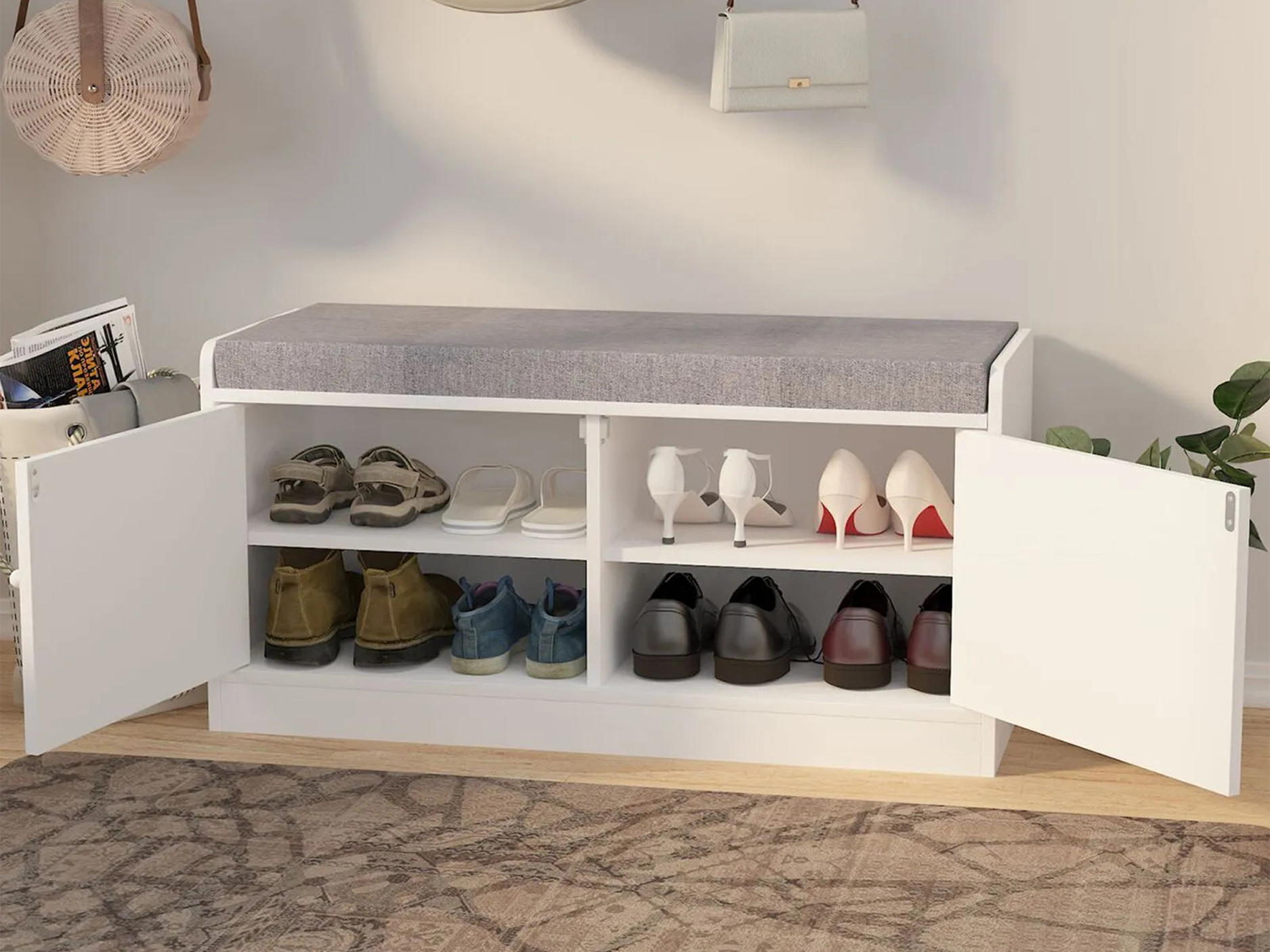 The NEMOND Shoe Storage Bench with Cushion is the perfect upgrade for any Home. Designed for both convenience and style, it lets you neatly organize your footwear while providing a comfortable seat for putting on or taking off shoes. Crafted from durable engineered wood in a clean white and grey finish, this bench blends classic charm with modern design. Functional, stylish, and space-saving ,it’s a must-have addition for any front entryway.