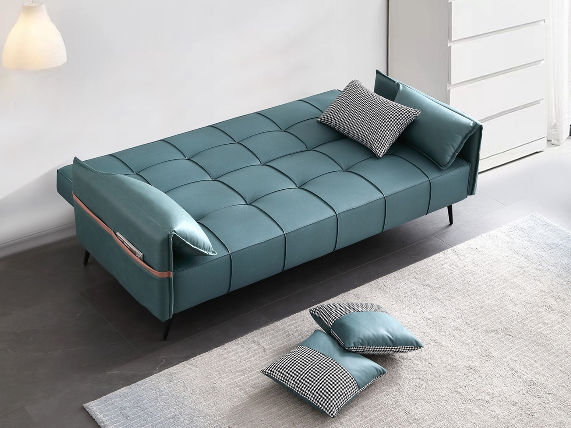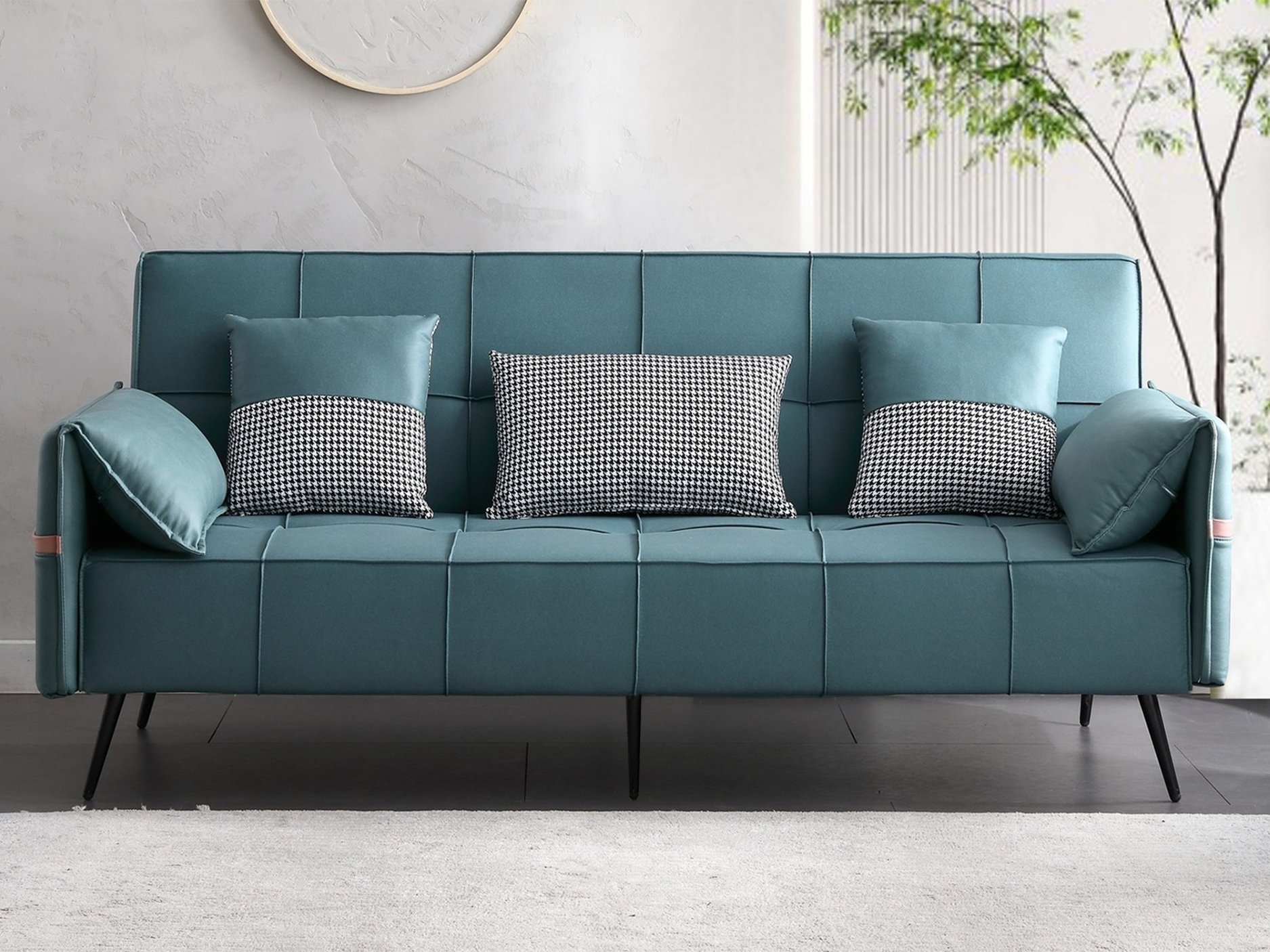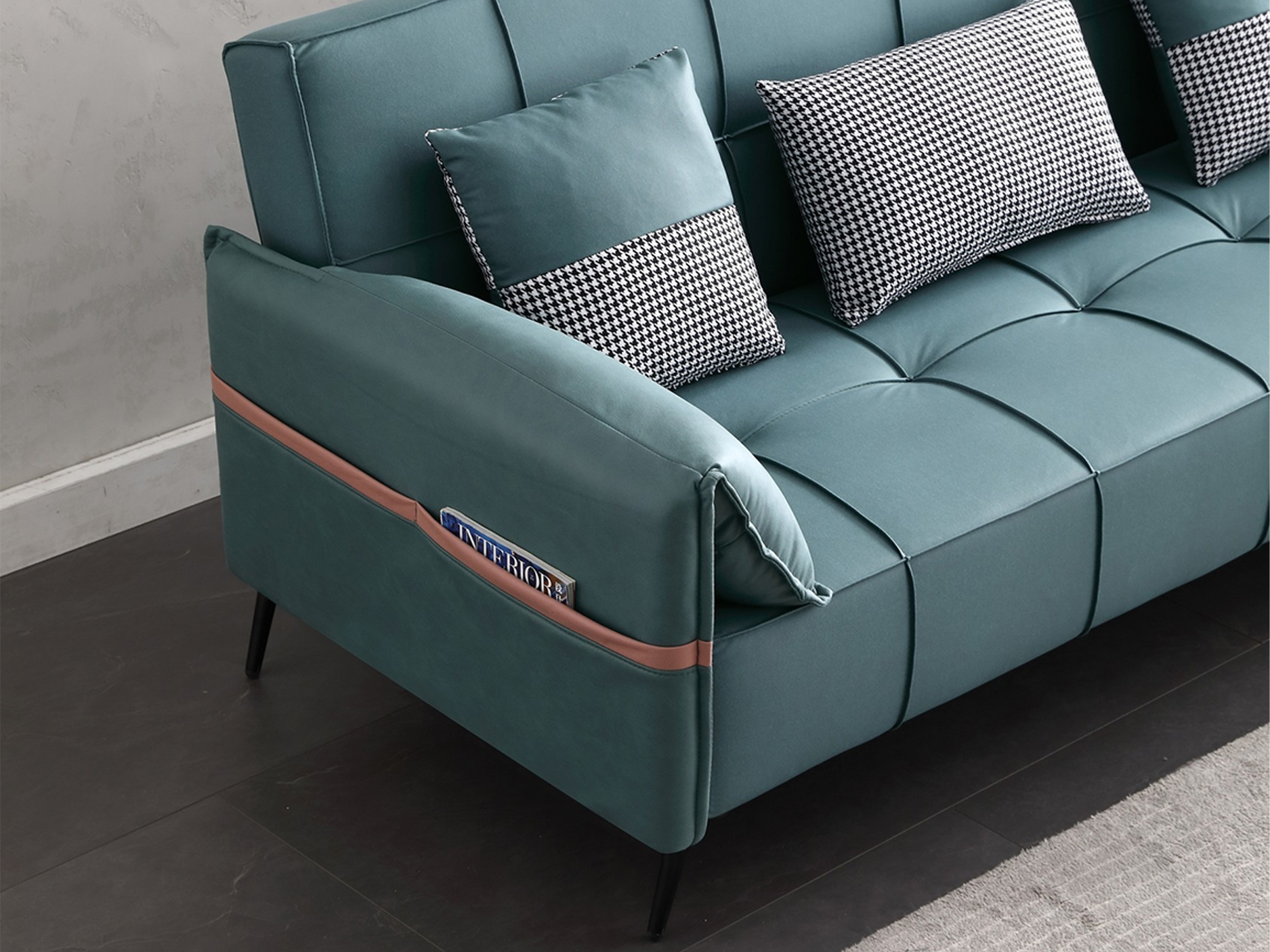 The OZONA Sofa Bed brings a fresh touch of luxury to any space. Upholstered in smooth faux leather and supported by elegant wooden legs, it transitions seamlessly from a stylish sofa to a comfortable bed in moments. Designed with high-density foam cushions and coordinating accent pillows. A stunning space-saving centerpiece for today’s modern home.
