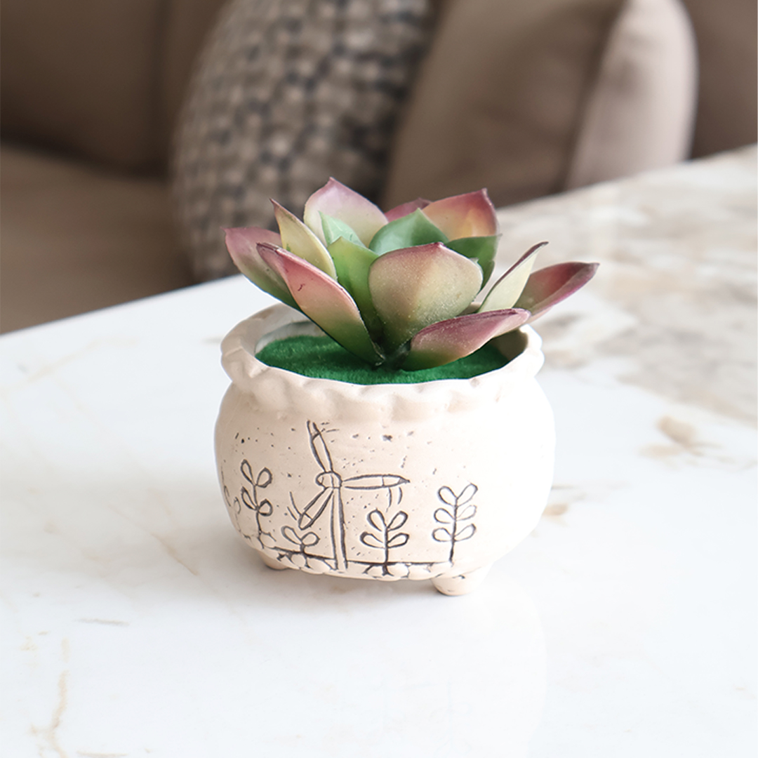 This small cute ceramic PLATTE Faux Plant will decorate your home or office. There are environment elements on the pots, great gift ideas for your friend child family.