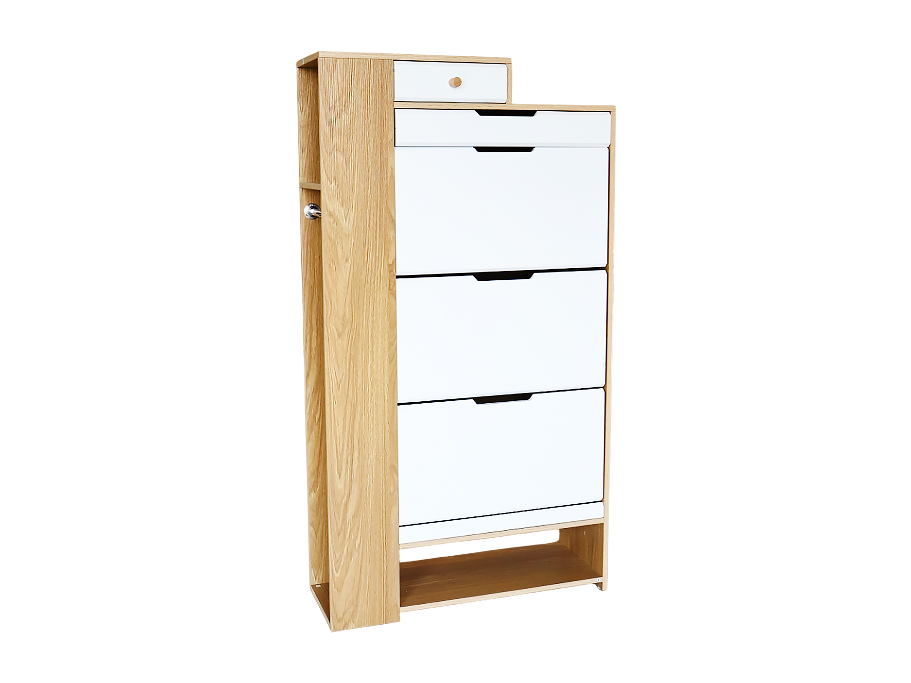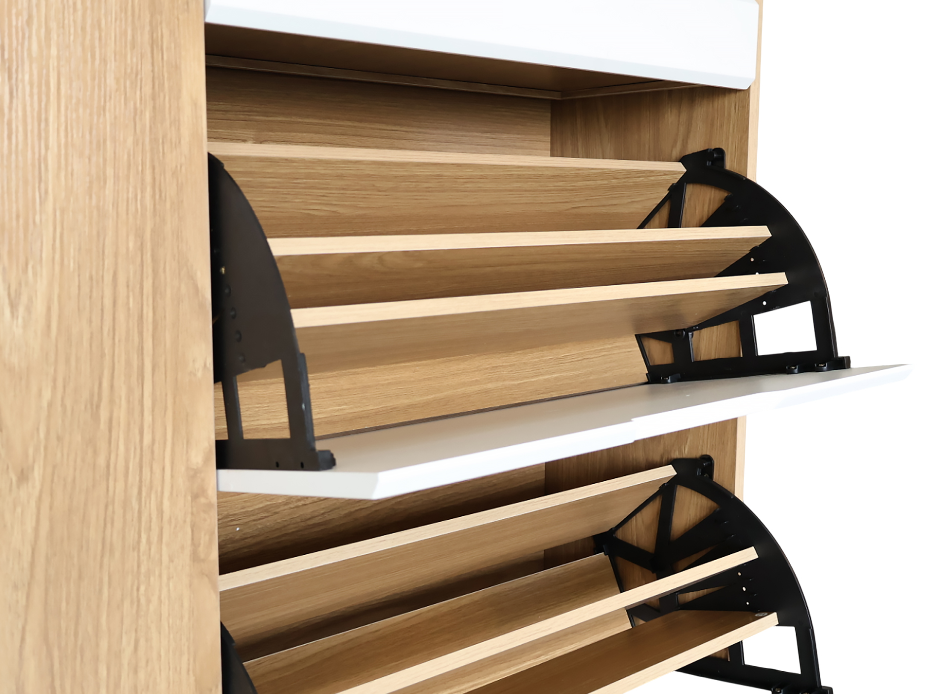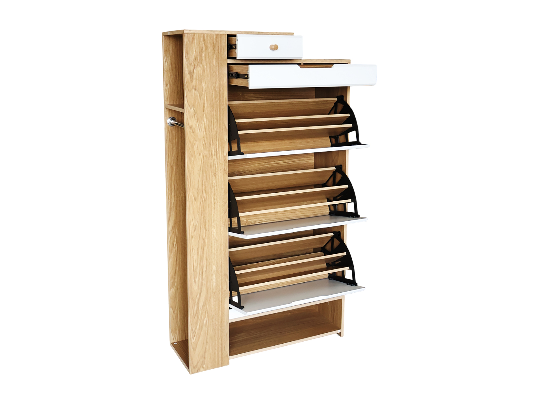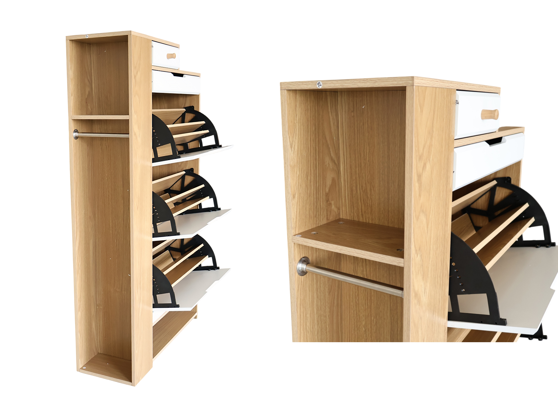 Keep your shoes organized in style with the RONNET Shoe Cabinet. Designed for modern living, this sleek cabinet features three flip compartments for easy shoe storage. Crafted from engineered wood and finished in a brown and white color combination, With added top drawers for extra storage, the RONNET is the perfect blend of form and function, offering both practicality and style for your home.