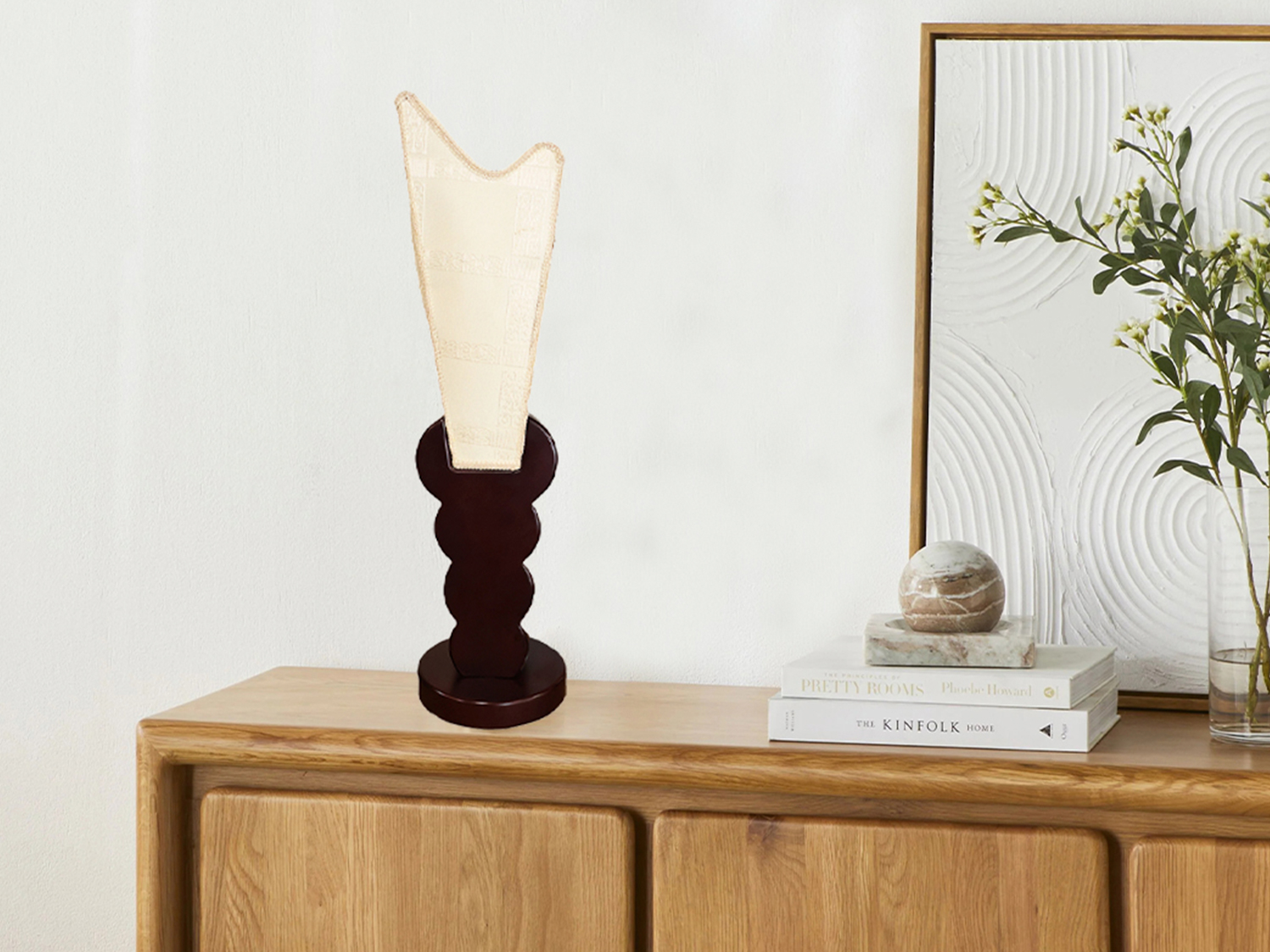 The Table Lamp is crafted from wood with carved detailing with a traditional influence but in a modern design. Great for living spaces modern or traditional providing ambient lighting.