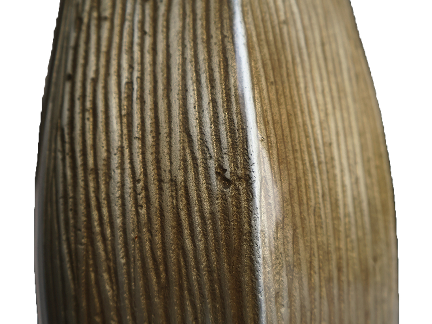 This VASE SMOKE 2 THAI with a unique, curved shape and a textured surface, wide mouth that tapers inward slightly before expanding outward again. The vase appears to be a decorative piece, possibly crafted from ceramic materials. Its unique shape and textured surface make it a visually appealing object that could add character to any room.