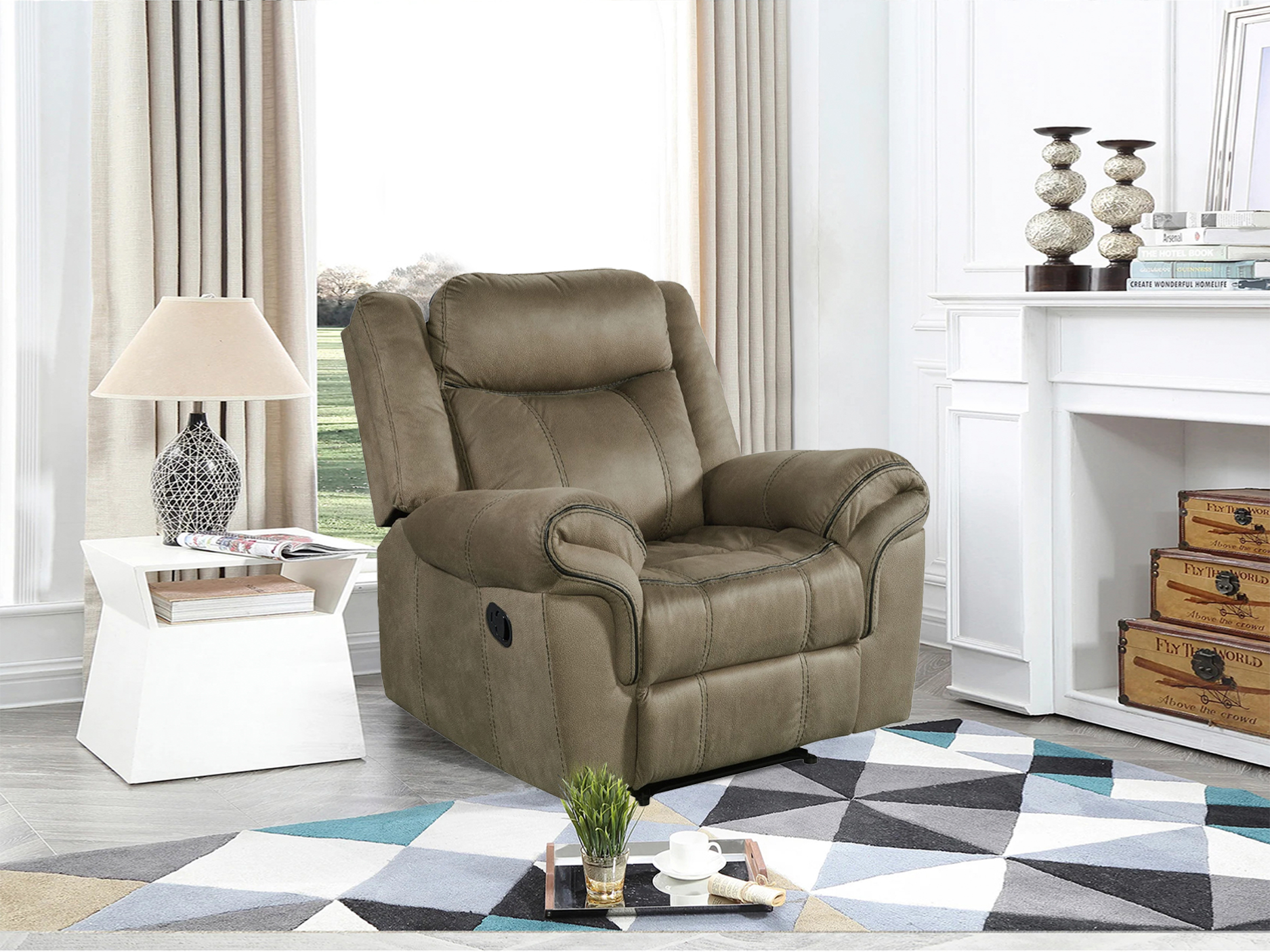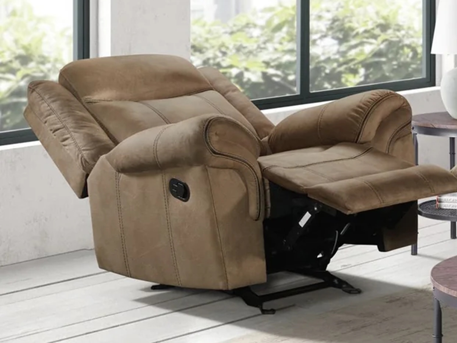 The VETEL Glider Recliner Chair is the epitome of comfort and style. With its sleek design and contrasting welt detailing, this recliner adds a touch of sophistication to any living space. The gliding feature allows for a smooth and soothing motion, perfect for relaxing after a long day. The full extension reclining function provides ultimate comfort, while the brown fabric adds warmth and richness to your room. Whether you’re lounging with a book or watching your favorite movie, the VETEL Glider Recliner Chair offers both style and relaxation, all in one.